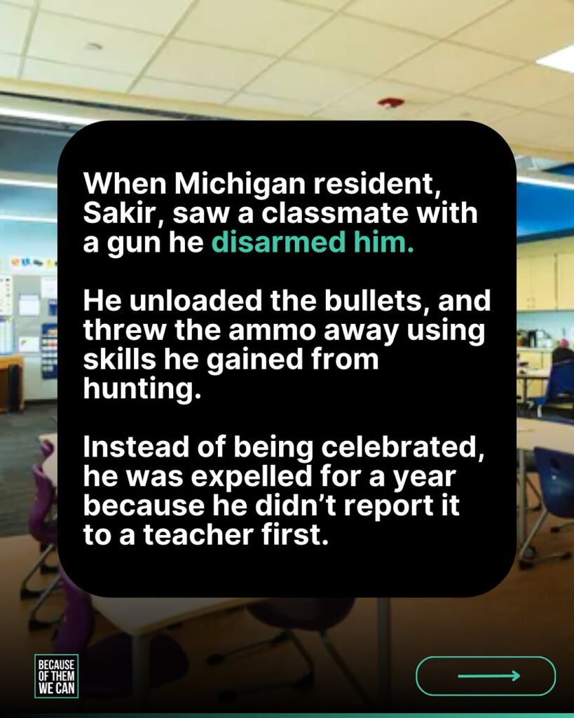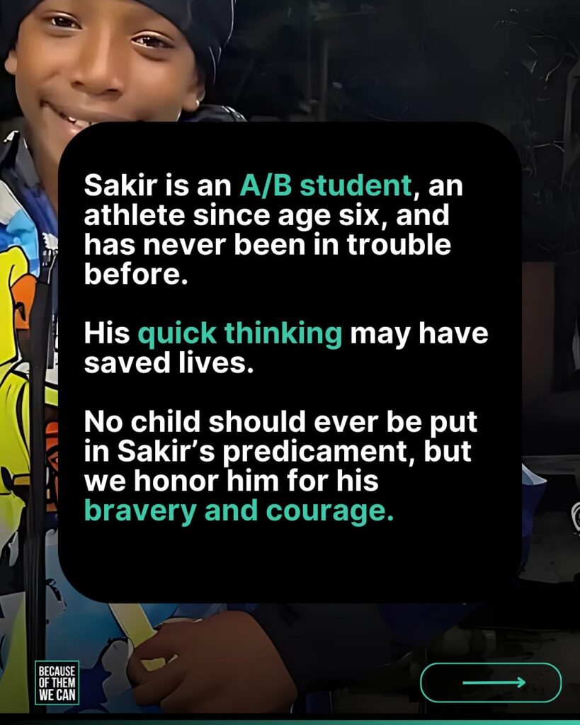He was expelled for his actions. We’re here to lift him up. “On what could have been a tragic and devastating day, 11 year-old Sakir Everett acted out of courage and compassion. When he discovered another student at his school carrying a gun, Sakir’s instinct was not to run away — it was to protect his classmates. He took the gun from the armed student, disassembled it, and removed the bullets, preventing what could have been an unimaginable tragedy.