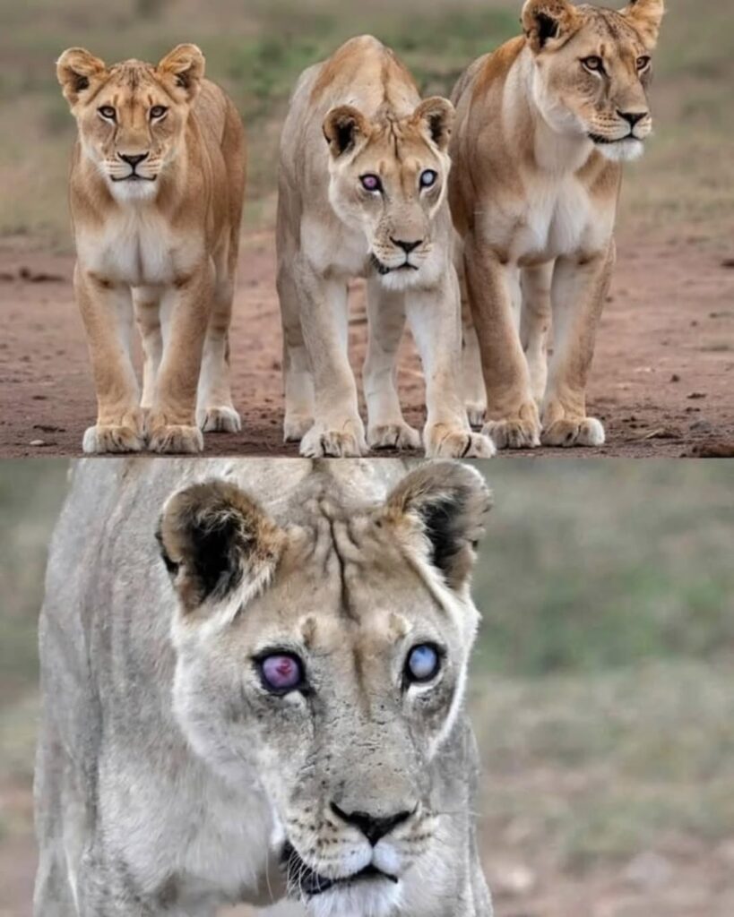 Unable to hunt in the traditional sense, Josie now relies on heightened smell, sound, and touch, sniffing out small animals that live in burrows and carefully navigating the bush. She is rarely alone. Her two daughters guide her using soft contact calls, allowing her to follow their movements and stay connected to the pride. At feeding time, other lions tolerate her presence, even after she bumps into vegetation or loses her bearings along the way.
