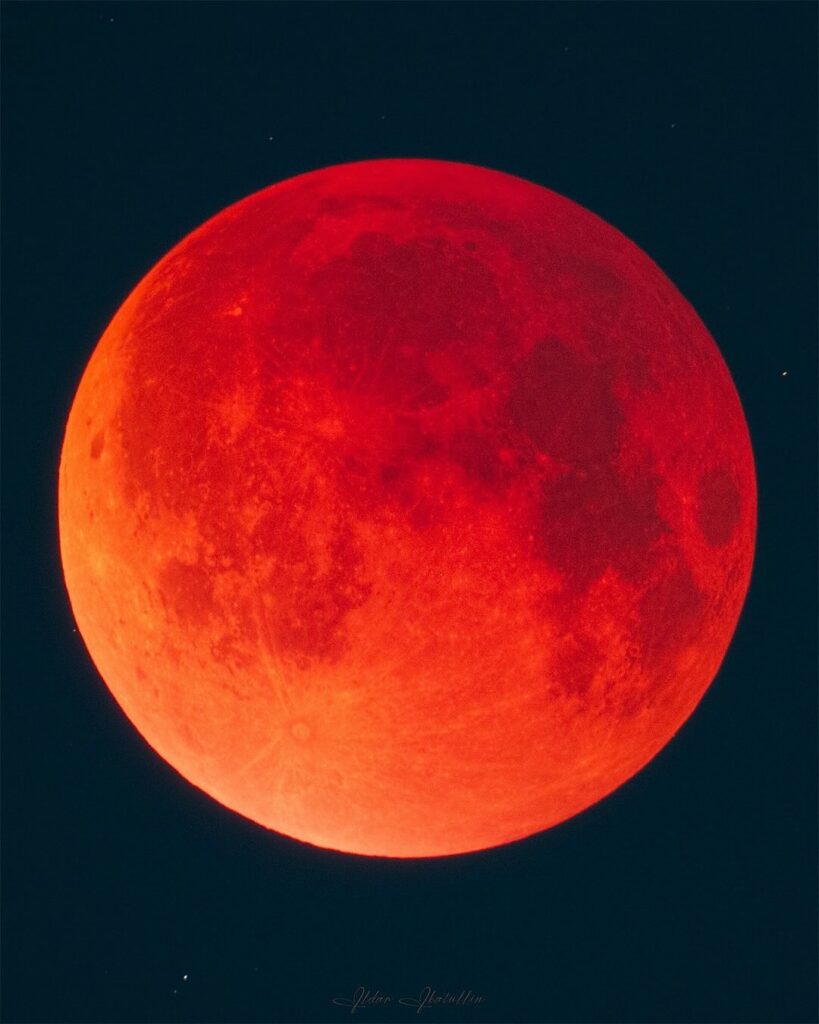 A total lunar eclipse happens when the Sun, Earth, and Moon align perfectly in space, with Earth in the middle. Earth’s shadow then falls across the Moon, giving it a dark red glow often called a “Blood Moon.”