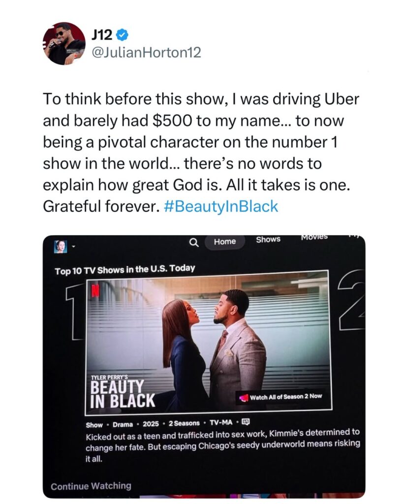 Before ‘Beauty in Black,’ Julian Horton Was Driving Uber With $500