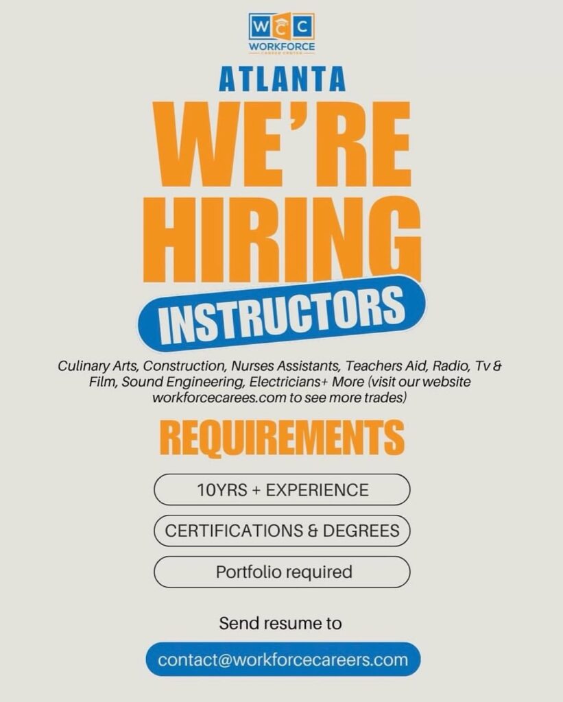 We’re hiring skilled instructors with 10+ years of experience, proper certifications & degrees, and a strong portfolio to join our Workforce Career Center Trade School.