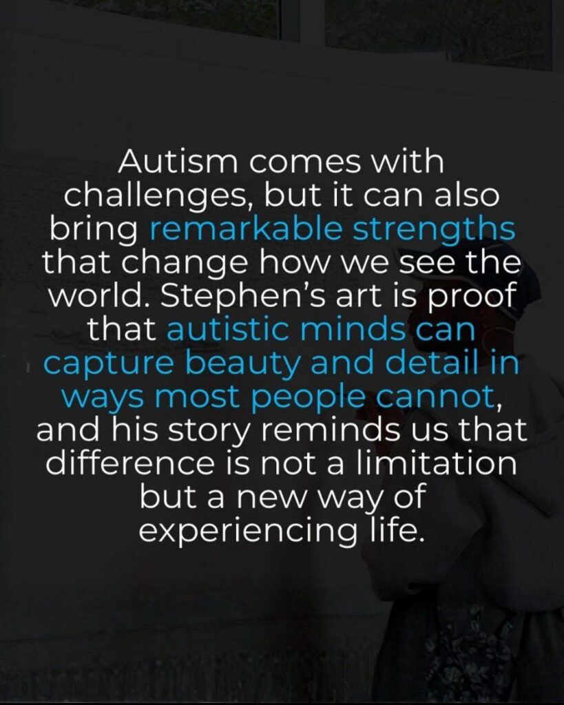 Every window, every bridge, every detail — perfectly captured from memory. His gift reminds the world that autistic minds don’t just fit in… they expand what’s possible. 💙