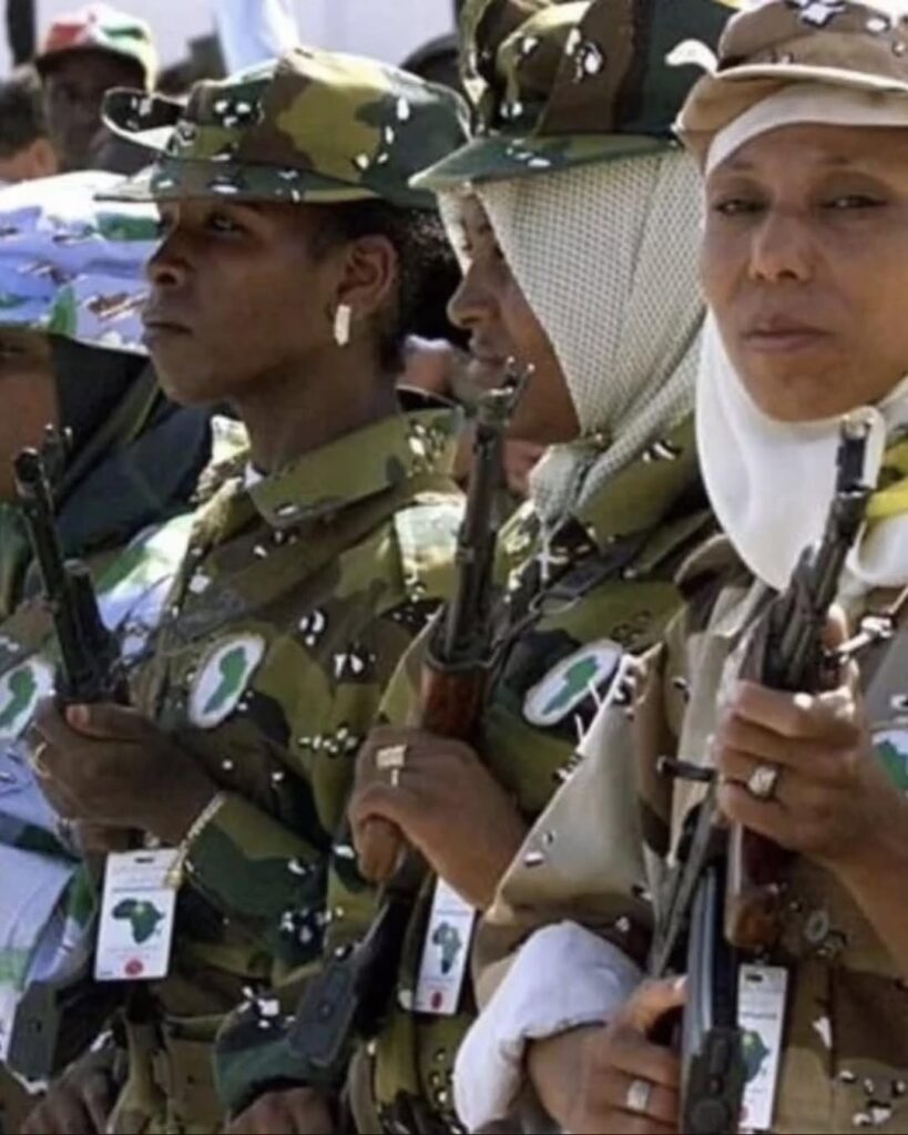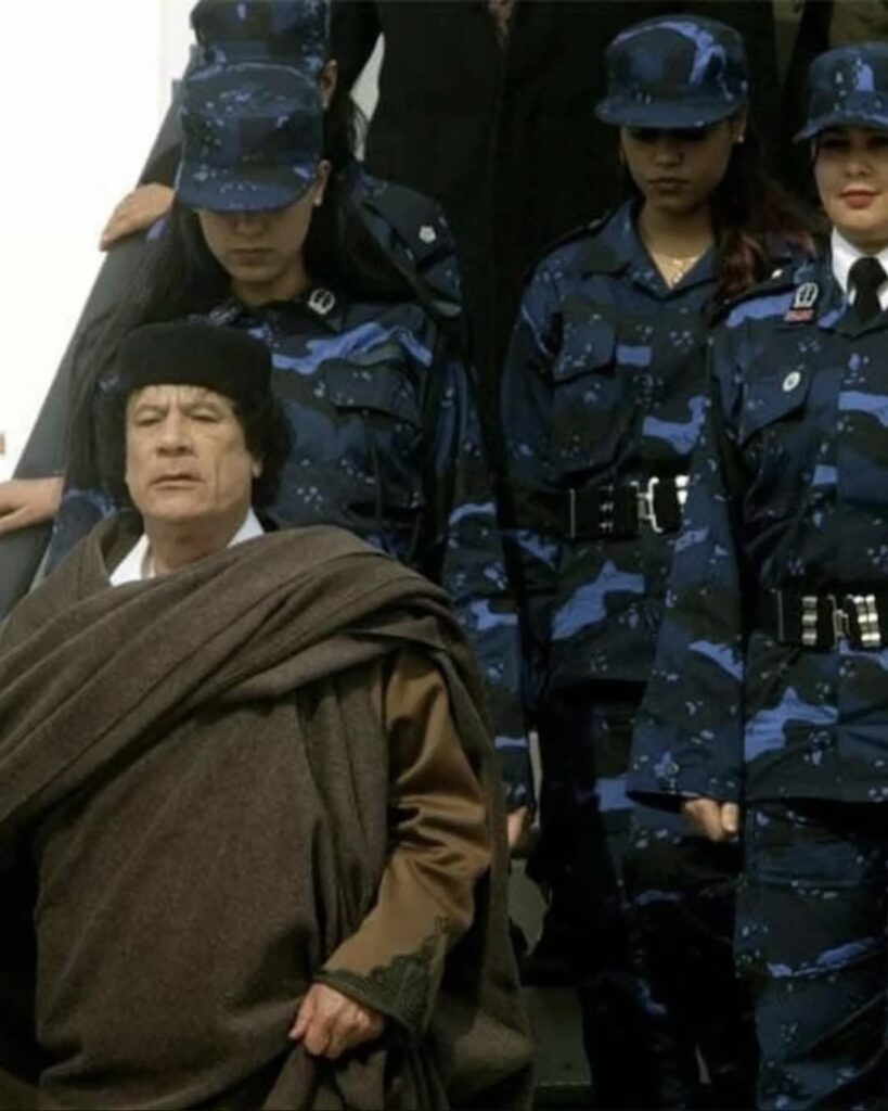 Often referred to as the “Amazonian Guard,” this all-female unit served as part of Libyan leader Muammar Gaddafi’s personal security detail for decades. The guards were trained in weapons, combat, and protection tactics, and were frequently seen accompanying him during public appearances and international visits.