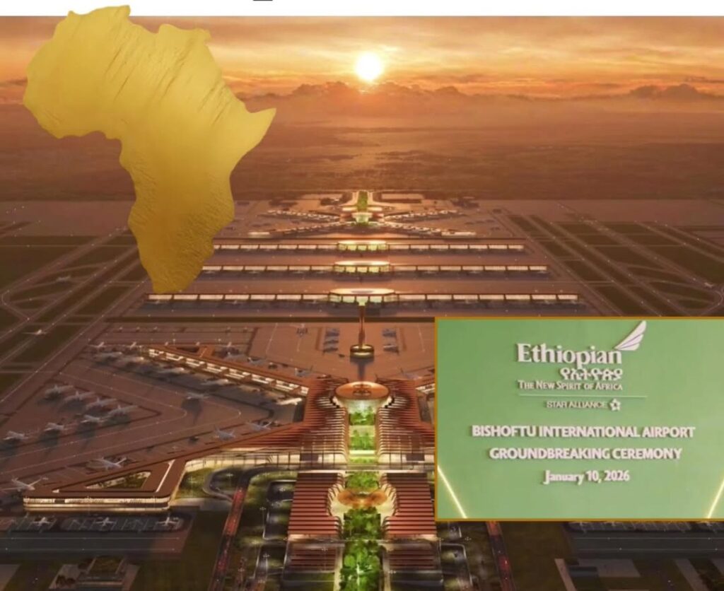 Located in Bishoftu, southeast of Addis Ababa, the new mega airport is a $12.5 billion infrastructure project spearheaded by Ethiopian Airlines. Once completed, it is expected to handle up to 110 million passengers annually, supported by four runways and large-scale terminal capacity—placing it among the world’s major global aviation hubs.