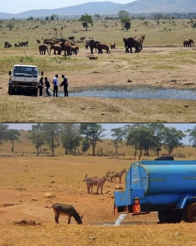 Using little more than a truck, hand-dug watering holes, and unwavering resolve, Mwalua provided relief to elephants, zebras, buffaloes, and baboons—many of which had no alternative means of hydration. At the height of the drought, he was reportedly delivering more than 12,000 liters of water per day, an effort sustained largely through public donations and grassroots support from around the world.