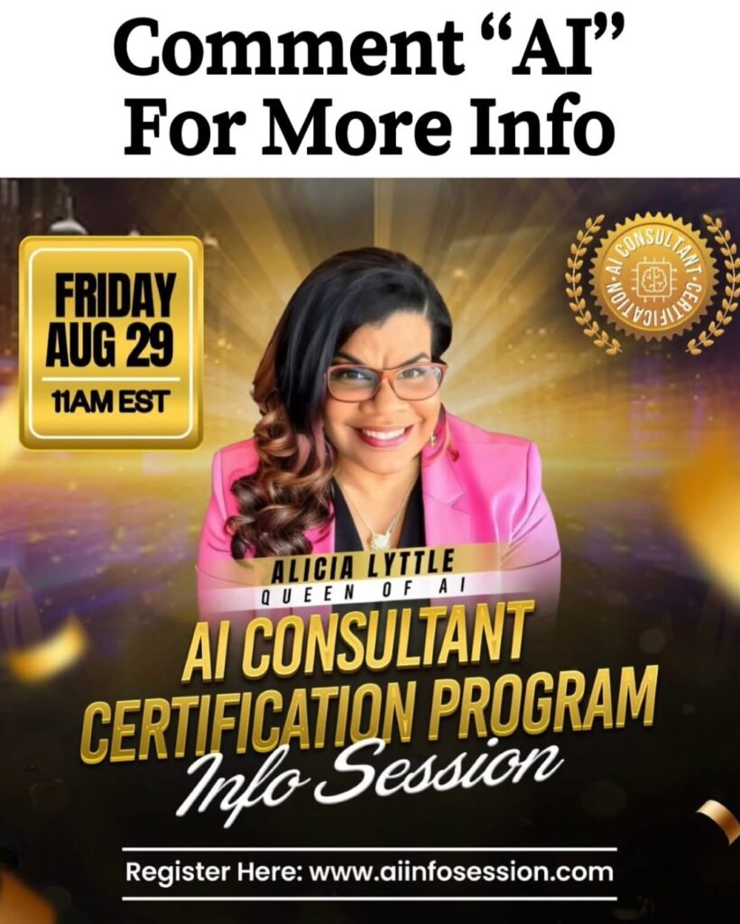 🗣️ Comment AI below to attend the AI Consultant Info Session with Alicia Lyttle and learn how to get started.